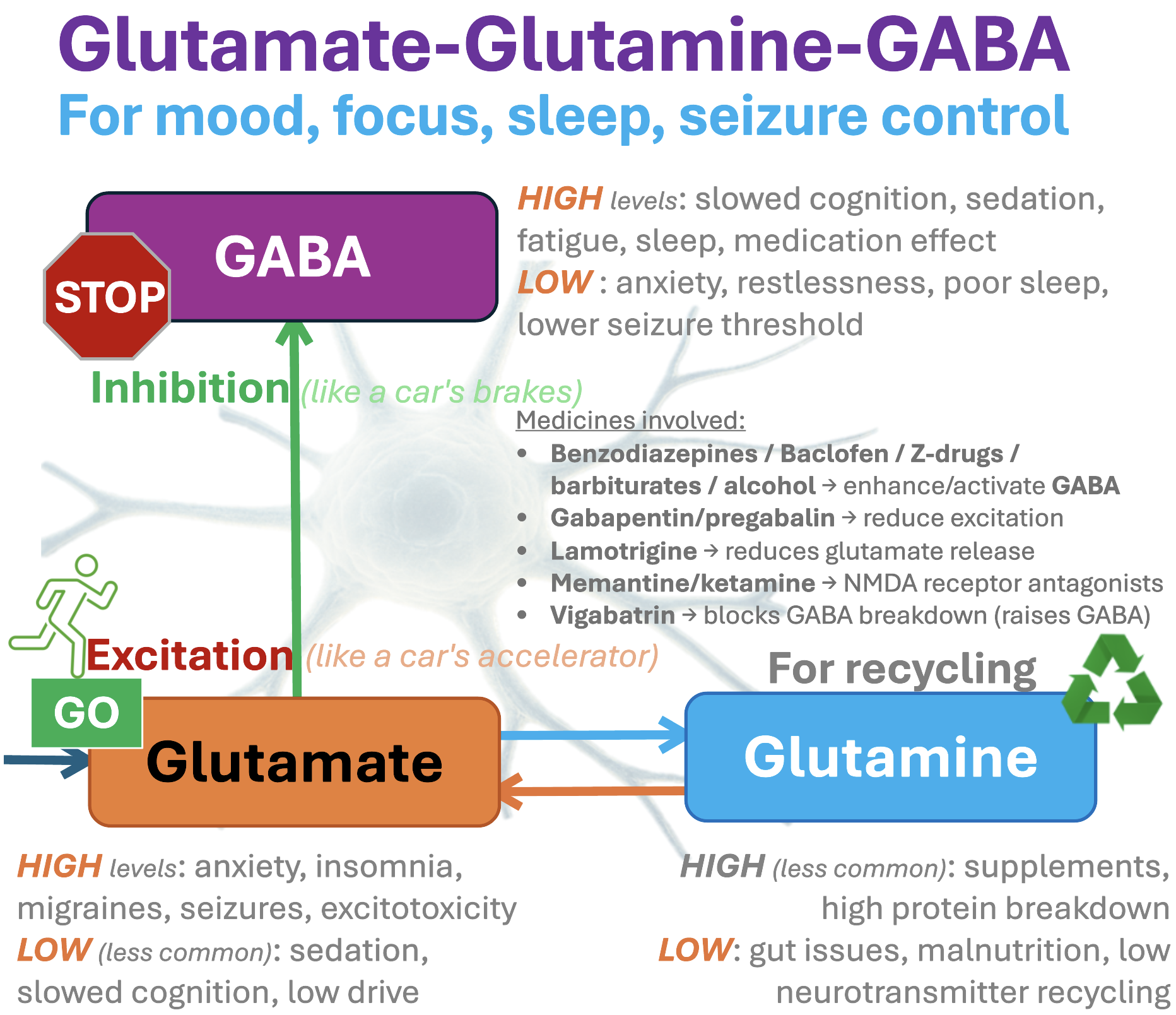 Glutamine also helps raise glutamate and GABA levels.